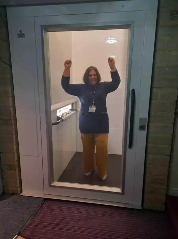 Jenny Hurkett in the new lift at The Criterion Blue Town - Enabling Access Throughout Blue Town Heritage Centre